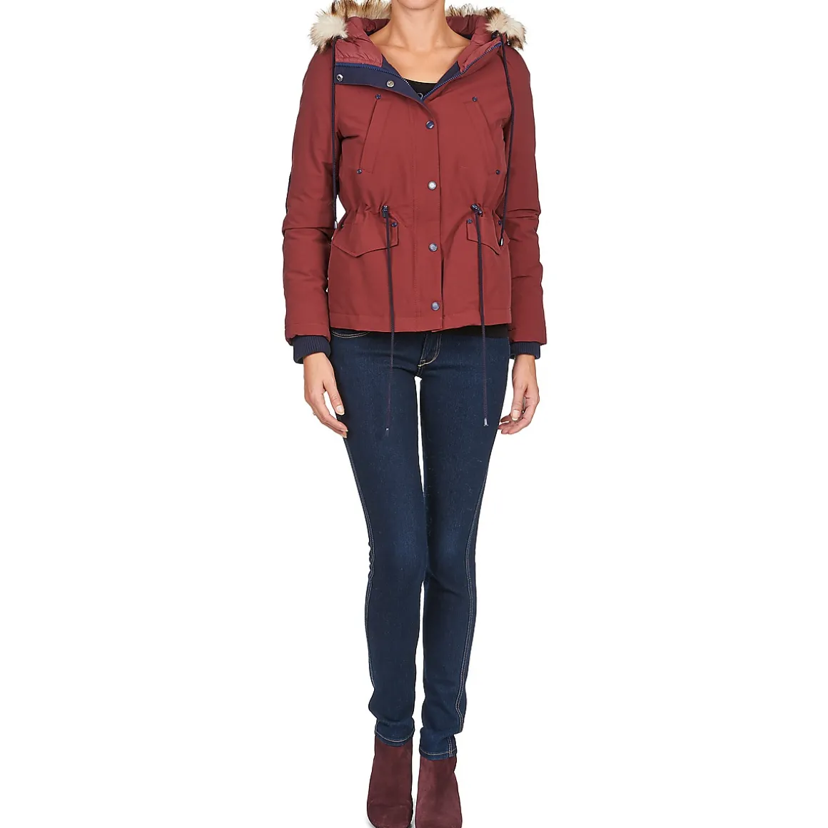 Cette parka Kookai devrait séduire les baroudeuses urbaines !Composée en coton (65%) , sa teinte rouge lui apporte une sacrée touche.Parfait pour vous tenir chaud juste comme il faut durant vos promenades hivernales !